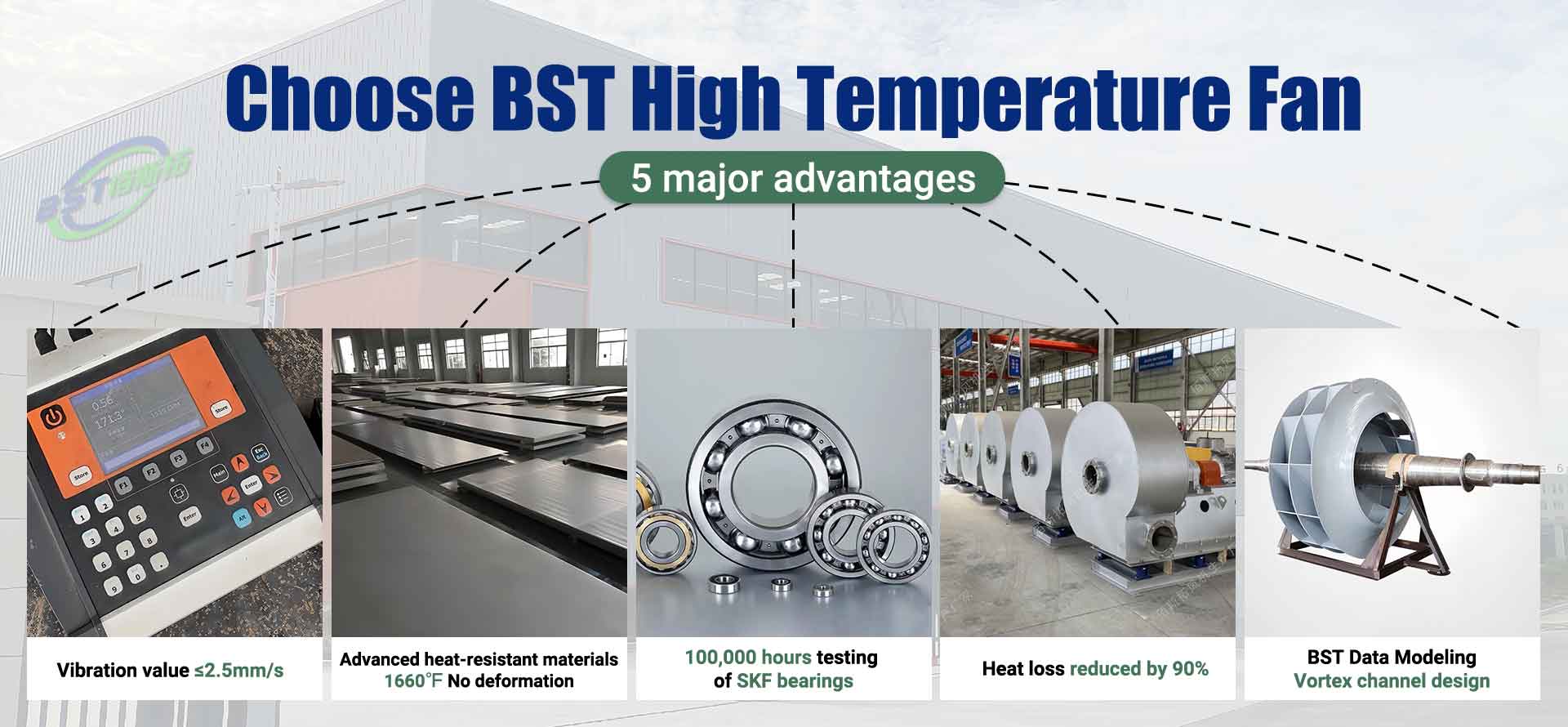 BST High-Temp Fans specializes in industrial, explosion-proof, energy-saving, and custom high-temperature centrifugal fans. Backed by two professional production bases and international certifications including CE and ATEX, we integrate advanced German fluid simulation mechanics and proprietary BST vortex channel design. Our fans are engineered to withstand extreme temperatures (up to 900℃+) and harsh industrial conditions, precisely meeting clients’ diverse requirements for air volume, pressure, and operational stability. We deliver comprehensive, tailored high-temp fan solutions to global markets including Europe, America, the Middle East, and Southeast Asia, supporting industries like metallurgy, chemical, and boiler systems.