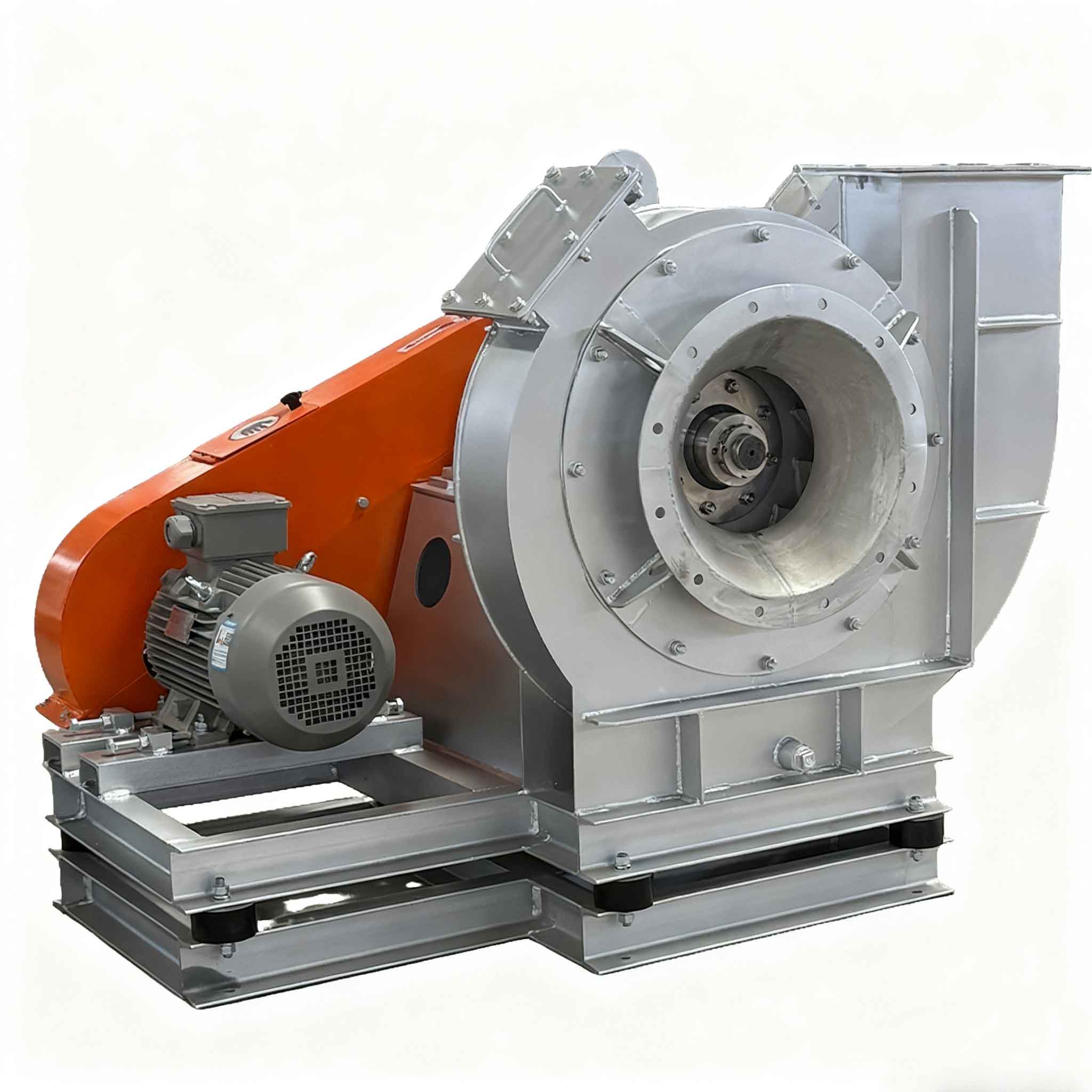 5. High efficiency and energy saving, adapted to complex working conditions, the impeller adopts a backward curved three-dimensional flow design, the air flow efficiency is >80% (10%-15% higher than ordinary centrifugal fans), and maintains stable power output in corrosive gases. Matching marine-grade explosion-proof motors (optional), protection level IP55/IP66, insulation level F, suitable for corrosive mixed gas scenes containing VOCs and dust. Supports variable frequency control (equipped with marine/industrial frequency converters), dynamically adjusts the speed according to the exhaust gas concentration and pipeline resistance, and the energy saving rate is more than 25%.